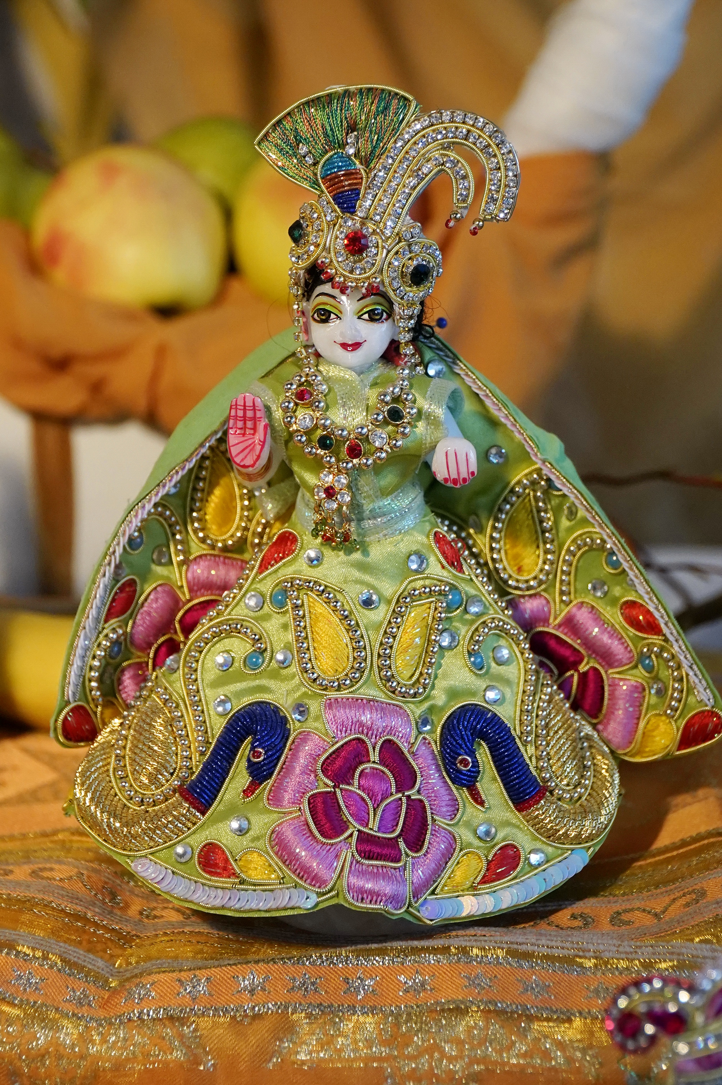 Niech wszyscy oddani Panu znajdą schronienie w stale rozszerzającym się, pełnym miłości uścisku Yogamayi, gdzie będą mogli rozkoszować się wyjątkową służbą wiecznym Władcom Miłości, Radha-Krysznie.