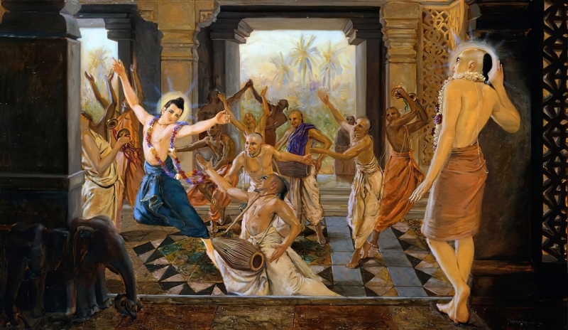 Brahma-vaivarta Puranie, w rozmowie z Ganga Devi, Pan Kryszna opisuje, że po upływie 5000 lat Kali-yugi, Jego mantra upasaka, wielki mędrzec i czciciel świętych imion Kryszny, pojawi się i rozpowszechni śpiewanie imion Kryszny (w formie mantry Hare Kryszna) nie tylko w Indiach, ale na całym świecie.